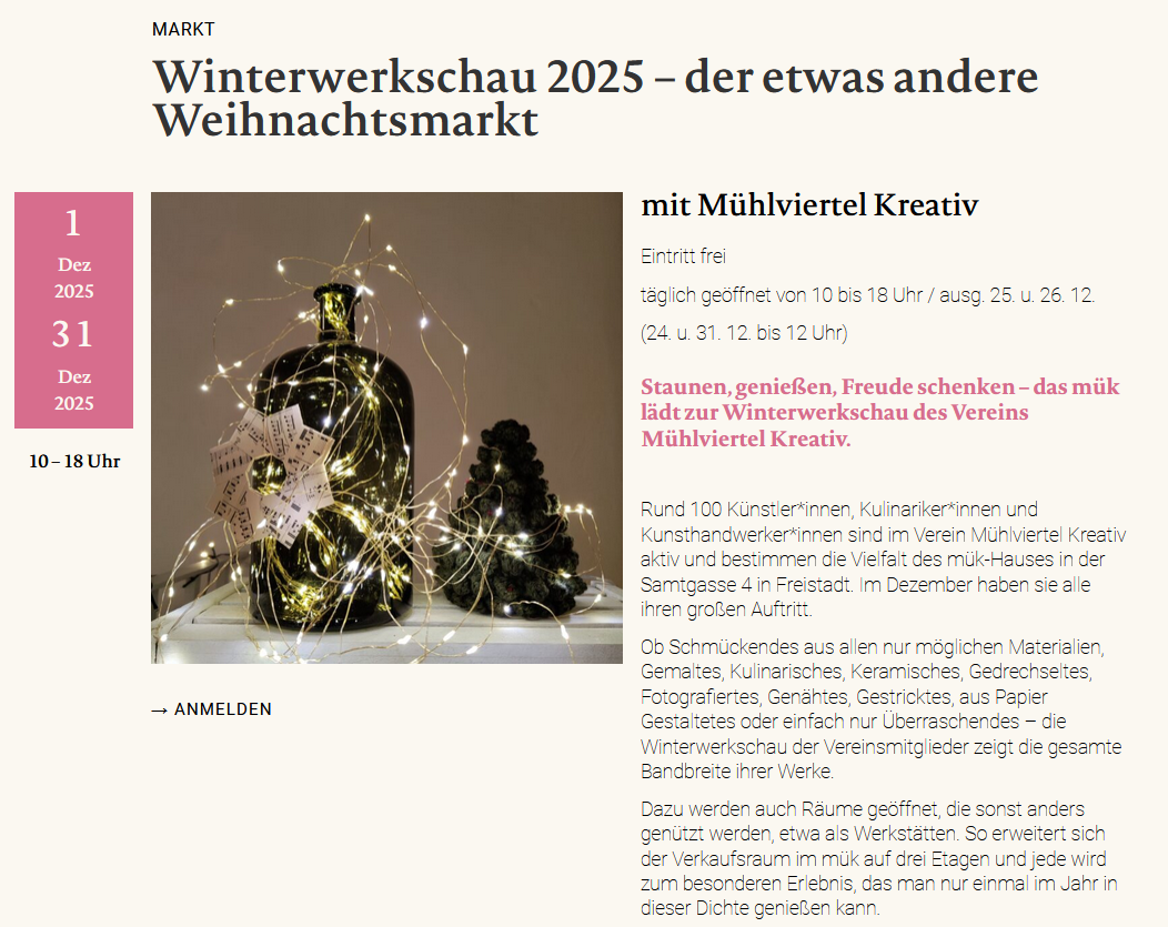 Ort: MÜK Freistadt, 4240 Freistadt (OÖ), Samtgasse 4